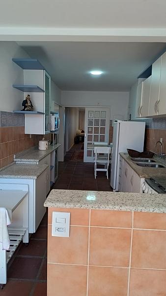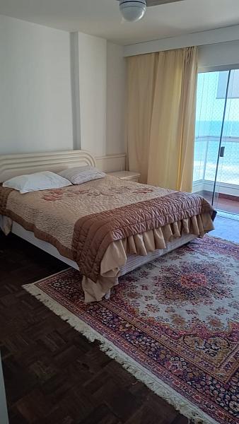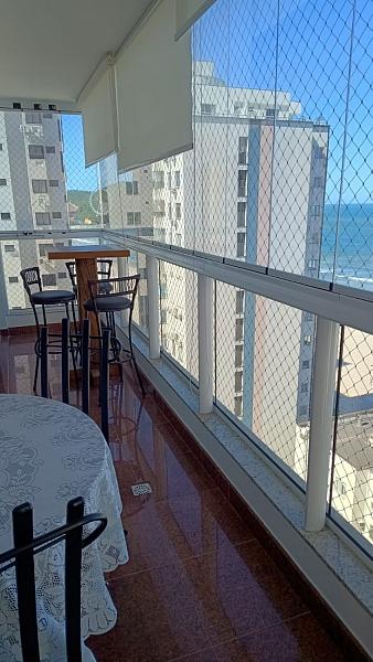 04 dormitórios, sendo duas suítes com camas de casal, banheiro social, , ampla sala com dois ambientes, cozinha, sacada com churrasqueira a carvão, com linda vista para o mar. Área de serviço com tanque e máquina de lavar e 02 vagas de garagem privativas.